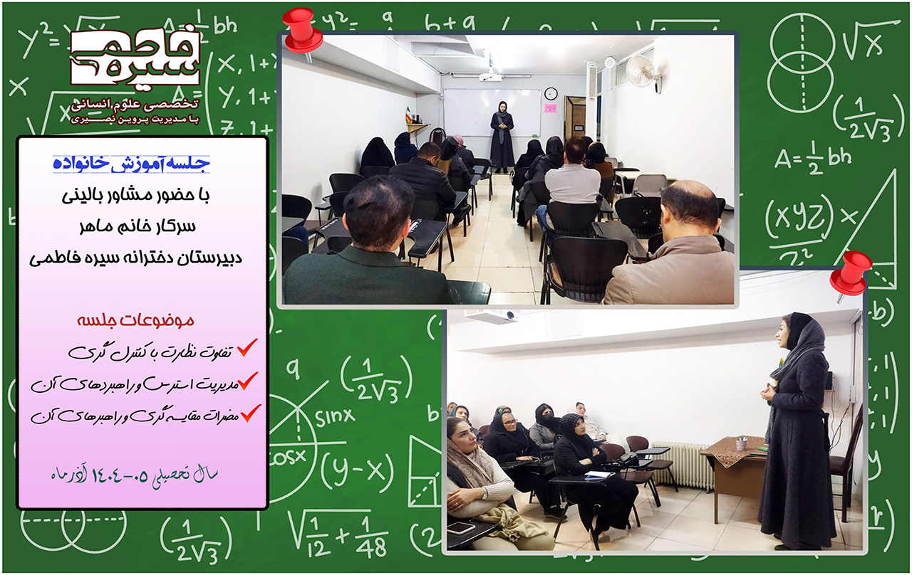 برگزاری جلسه اولیا محترم و مربیان دبیرستان سیره فاطمی به همراه جلسه آموزش خانواده توسط مشاور ارشد بالینی.