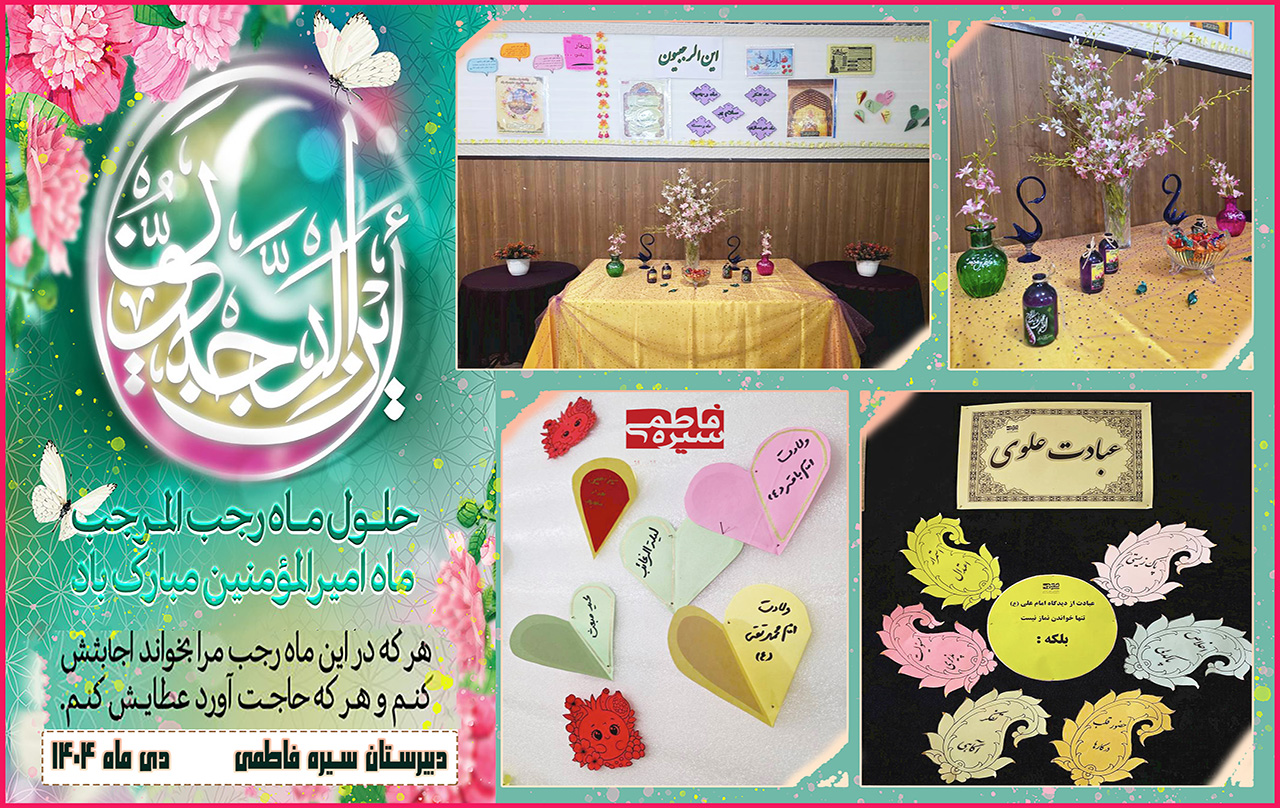 فرا رسیدن ماه رجب مبارک،روزهای مهمی در این ماه وجود دارد همچون میلاد امام جواد (ع)، میلاد حضرت علی (ع) و میلاد امام محمد باقر (ع) در این ماه مبارک اتفاق افتاده است.همچنین سه شنبه های مهدوی حرکتی خودجوش و اجتماعی است برای یادآوری عزیزترین امام عصرمان، در دبیرستان سیره فاطمی همواره به یاد امام زمان عج هستیم.